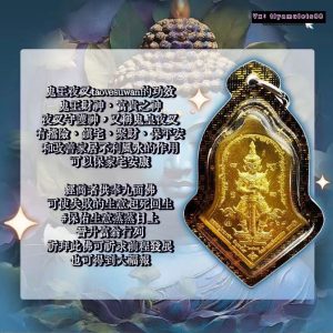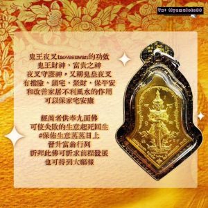 鬼财王神、富贵之神,夜守叉护神,又称皇鬼夜叉、夜叉王,有挡险、镇宅、聚财、保安平和改家善居不利风的水作用,可以家保宅安康。