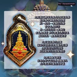 ➽九面佛称又富贵佛或面九富贵佛。富佛贵有两种相法造型,其一是同一尊陀佛的佛首有个九面容,另一种是则同一尊佛陀,有个九佛首。亦表代着九位善良、福倶德足、无的上富贵者。