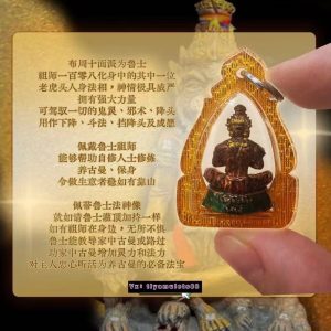 【圣简物介】:布十周面派鲁为士祖师一百八零化身中的其中一位,老头虎人身法相,神极情具威严,拥强有大力量,可驾驭一切鬼的灵、邪术、降头,用下作降、斗法、挡头降及成愿。佩鲁戴士祖师,能帮够助自人修士修炼、养古曼、保身、令生做意者如稳有靠山。佩鲁带士法神就像如请鲁士顶灌加持一样,如祖有师在身边,无不所惧。鲁能士教导家古中曼或路过,助中家古曼增灵加力和法力,对人主忠心听活,为古养曼的备必法宝。